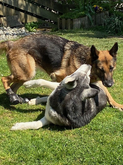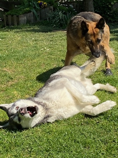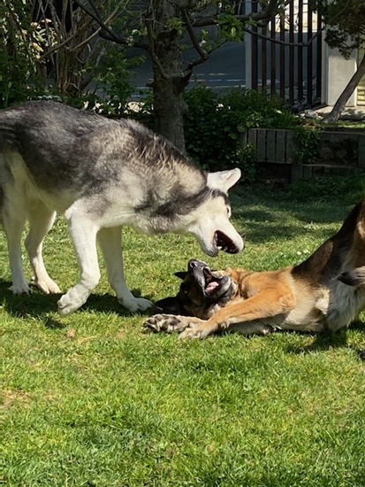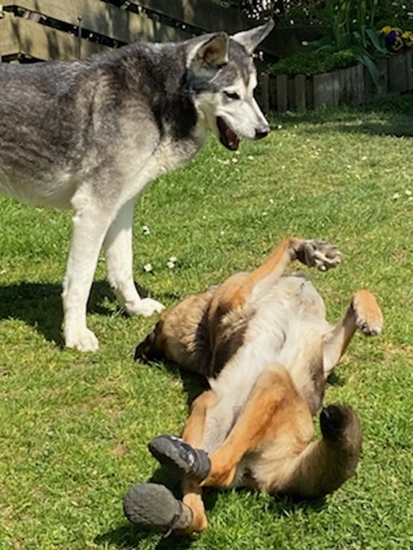 Letzte Woche bekam Kiara sehr sympathischen Besuch von Husky – Mix Pascha und seinen Zweibeinern. Kurz darauf habe ich mich mit Kiara im Gepäck auf den Weg Richtung Basel gemacht, um mir dort Paschas Zuhause anzusehen. Und auch da hat die Chemie für alle gestimmt und Kiara durfte zum Probewohnen einziehen. Und heute darf ich hier schreiben, dass Kiara dort ihr perfektes Zuhause gefunden hat und bleiben darf 22.11.20: Liebe Sandra Kiara geht es sehr gut. Uns anderen auch. Sie macht sich ganz wunderbar, ist aufgeschlossen, neugierig, zugänglich und lernt sehr schnell. Mit Pascha und Oli im Verbund ist alles harmonisch. Bei uns zu Hause hat Kiara Paschas grosses Körbli beschlagnahmt. Pascha hat sie gewähren lassen und etwas doof aus der Wäsche geguckt. Da haben wir ein zweites, etwas kleineres Körbli für Kiara besorgt. Mit dem Resultat, dass Kiara jetzt immer noch ins grosse Körbli geht und Pascha sich in das kleinere quetscht. Beide Hunde scheinen mit dieser Lösung sehr zufrieden zu sein. Auf Spaziergängen ist alles unproblematisch, auch Hundebegegnungen meistert Kiara souverän. Auch die drei Hunde in ein Auto zu kriegen ist unerwartet gut gelungen. Sie sind einfach alle reingehüpft und wir konnten losfahren. Kein Streit unter den Hunden auch auf engem Raum und Kiara hat nicht erbrochen und interessiert zum Fenster rausgeguckt. ![]() Bezüglich des Ganges haben wir festgestellt, dass Kiara sich beim Laufen durch Aussenrotation der rechten Hüfte den rechten Fussballen an einer Stelle wundscheuert. Nach einer ausführlichen «Ganganalyse» haben wir ihr spezielle Schühchen für die Hinterläufe besorgt, damit die Stelle abheilen kann. Und siehe da, die Stelle heilt nicht nur gut ab, ihr Gangbild ist jetzt viel runder und harmonischer. Sie läuft fast schon normal und dreht die Hüfte nicht mehr aus und sinkt nicht mehr ein. Ganz liebe Grüsse Sonja, Christian, Pascha und Kiara 25.11.20: Liebe Sandra Kiara darf sehr gerne bleiben!!! Es läuft weiterhin alles sehr gut. Kiara hat mich heute 3 Stunden in die Praxis begleitet und war vorbildlich. Sie hat sich dort in ihr Körbli gelegt und alles ging sehr gut. Sie ist ein Traumhund. Ein wenig arbeiten müssen wir noch daran, dass sie mich nicht ständig überall hin begleiten muss und auch mal liegen bleibt, wenn ich ins Bad gehe oder so. Ganz liebe Grüsse Sonja, Christian, Pascha und Kiara S. 01. Mai 2021 Kiara macht sich grossartig ! : Solche Happy-Ends sind es, die einem speziell viel Kraft geben, mit der Tierschutzarbeit weiterzumachen. Gestern Abend kamen News von Kiara und ich habe mich enorm darüber gefreut, schaut selbst : Kiara und Pascha vor einigen Tagen im Garten. Kiara macht sich grossartig ! ![]() ![]() Wir waren vor