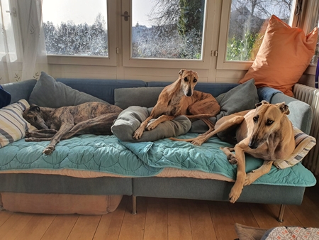 Noite Geboren: 13.03.2013 Rasse: Galgo español Geschlecht: Hündin kastriert Grösse: 64 cm / 28 Kg Oktober 2020 Vorstellung von Noite : Noite konnte, nachdem sie einige Tage in einer kleinen Stadt in der Nähe von Jaén herrenlos herumstreunte, von einigen jungen Tierschützern gesichert werden. Sie wurde in die "Protectora de animales ARCA" gebracht. Dort wird sie nun für die Reise in die Schweiz vorbereitet und reist wenn alles planmässig läuft noch dieses Jahr zu uns, damit wir ihr ein neues Zuhause suchen können. Noite wird als mit anderen Hunden gut verträglich beschrieben, aber noch schüchtern gegenüber Menschen. Falls Sie Noite kennenlernen möchten und ihr ein passendes Zuhause geben möchten, verlangen Sie bitte unser unverbindliches Bewerbungsformular: Tel. 0041 32 462 3219 (falls Anrufbeantworter, bitte Meldung UND Telefonnummer hinterlassen, wir rufen gerne zurück) oder per Mail: info@grisette.ch. Noite ist geimpft, gechippt, kastriert, auf Mittelmeerkrankheiten getestet und wird bei Einreise verzollt. Sie wird mit Schutzvertrag gegen eine Schutzgebühr von SFr. 500.-- nach vorheriger Platzvorkontrolle vermittelt. 20. Dezember 2020 Noite ist angekommen : Nun ist auch Noite bereits eine gute Woche bei uns im Jura. Sie macht sich gut, kommt langsam an. Auch wenn es sicher noch viel Situationen geben wird, in denen sie unsicher ist. Hier erste Videos und Fotos: Und heute musste Noite zum "Katzentest" antreten, auch dies wie immer eine "Momentaufnahme", wir finden aber das hat sie gut gemacht : Katzentest Vol. 1 (movie) Katzentest Vol. 2 (movie) 05. Januar