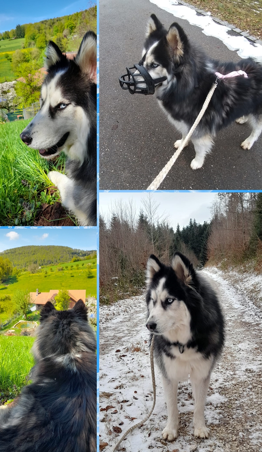 Im Februar kam endlich das Schreiben vom Vet-Amt Jura mit den Vorgaben zur Vermittlung von Alarik. Basierend auf dem Urteil der Verhaltensanalyse, die Ende April 2025 stattgefunden hat. Wieso sich das Ganze so herausgezögert hat, wissen wir nicht. Obs auch daran lag, dass die Tierärztin – verwandt mit der Ex-Besitzerin bei der der Beissvorfall geschah - den Vorfall damals fälschlicherweise dem Vet-Amt Jura statt dem Vet-Amt Bern – Wohnkanton der Ex-Besitzerin - gemeldet hat, sei mal dahingestellt (honi soit qui mal y pense). Alarik darf nur als Einzelhund vermittelt werden, das war für uns aber eh schon klar (sh oben). Wenn er mit anderen Hunden agiert (spielt), draussen als auch drinnen, muss er einen Maulkorb tragen und an einer Schleppleine geführt werden. Das ganze Urteil als auch den Bericht zur Verhaltensanalyse wird natürlich mit potentiellen Interessenten gerne im Detail besprochen. Es folgen noch ein paar Impressionen der letzten Monate. Wir hoffen sehr, dass Alarik bei den richtigen, verantwortungsvollen Menschen eine Chance bekommt zu zeigen, was für ein toller Hund er ist. |