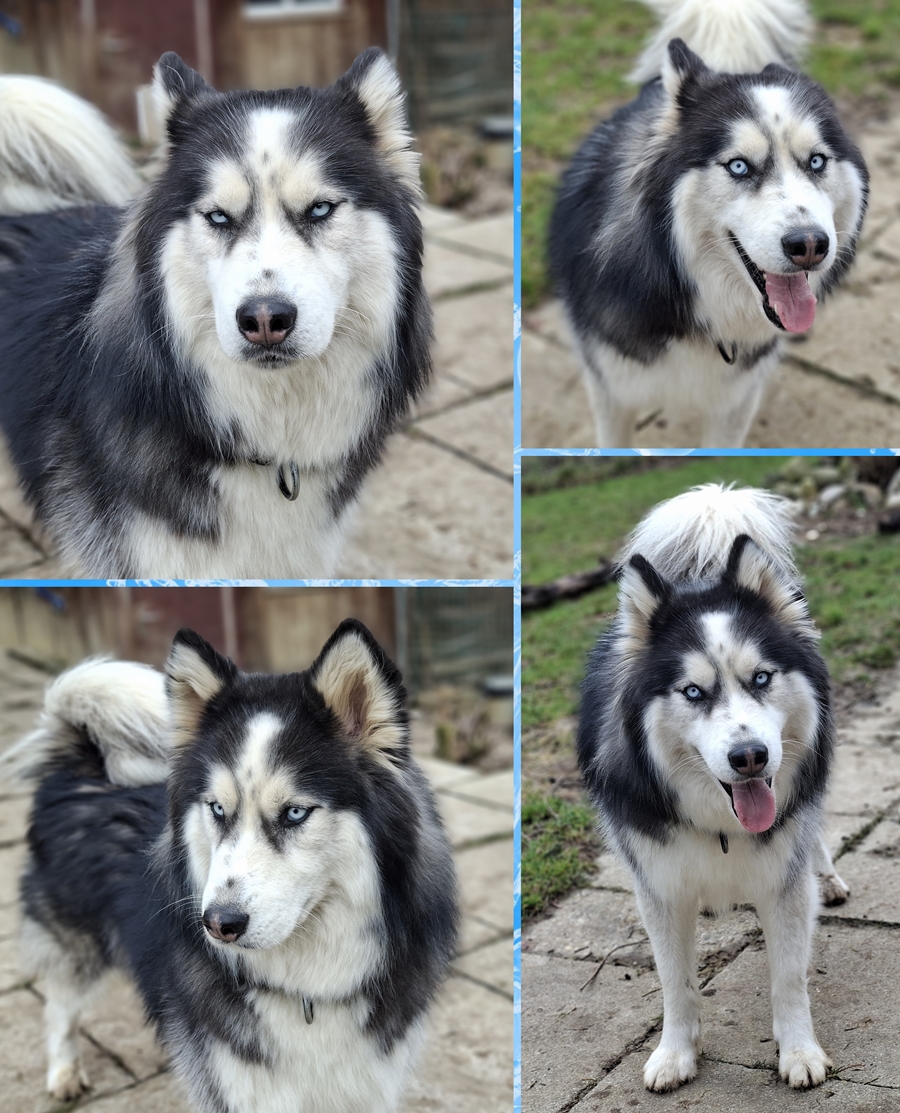 Geboren: ca. Februar 2023 Rasse: Malamute x Husky Geschlecht: Rüde kastriert Grösse: ca 68 cm Dezember 2023 Vorstellung von Alarik : Alarik und seine drei Geschwister Narvik, Tycho und Ilvy verbrachten ihr bisheriges Leben fast ausschliesslich auf einer Terrasse, zusammen mit ihren Eltern. Die Vier sind hier in der Schweiz geboren, ihre Eltern stammen aus dem Ausland. Endlich konnten die vier Junghunde dort weggeholt werden und befinden sich nun bei uns in der Pension, bis neue Zuhause gefunden werden (die Elterntiere befinden sich in einer anderen Pension). Alarik war von den Vieren der Zutraulichste, Narvik, Tycho und Ilvy waren als die Polizei zusammen mit dem Vet-Amt sie aus der Wohnung holte sehr ängstlich. So sah es aus als Narvik, Tycho und Ilvy bei uns ankamen..... wir mussten sie in den Auslauf tragen, sie waren starr vor Angst : ![]() In der Zwischenzeit haben alle Vier schon grosse Fortschritte gemacht, am besten sieht man das wohl auch in den Videos unten. Es ist wunderbar zu sehen, wie die vier Hunde anfangen, ihr Leben zu geniessen. Spass