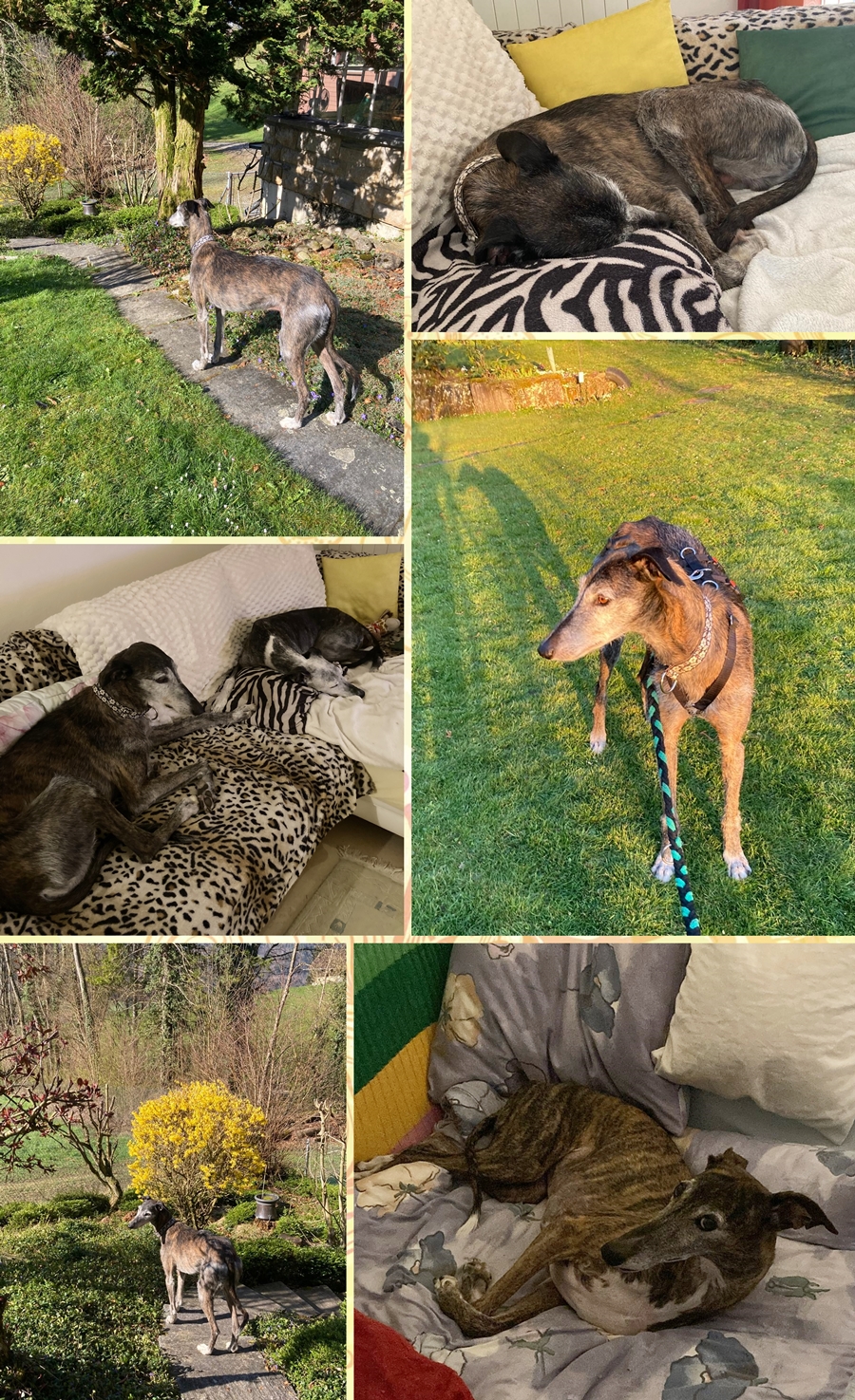 Der tolle Aurio ist bei Lluvia und ihrem Frauchen auf Pflegestelle gezogen, wo er gerne kennengelernt werden kann. Das Pflegefrauchen ist unserer Meinung: ein ganz Lieber. 15. April 2026 Aurio darf bleiben : Aurio hat nicht nur Lluvia um die Pfoten gewickelt, sondern auch ihr Frauchen: 07.04.26: Hallo Sandra Jetzt ist Aurio schon eine Woche bei mir und Lluvia. Die Zwei lieben sich, liegend immer zusammen, egal wo. Aurio ist ein Traum-Galgo, in allen Situationen ohne Probleme, sucht immer den Kontakt zu mir, kein Ängste, einfach super. ![]() LG Doris, Aurio und Lluvia Wir freuen uns für diesen tollen Hund, dass er jetzt einen wunderbaren Lebensabend verbringen darf |