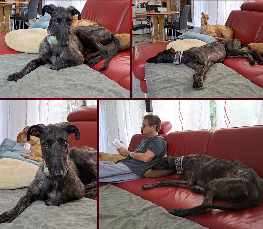 Carmona 14.09.25 (movie) Carmona 14.09.25 Vol 2 (movie) Carmona 18.09.25 (movie) Carmona 18.09.25 Vol 2 (movie) ![]() ![]() Auf der Pflegestelle wurde, nach einer völlig unproblematischen Eingliederung ins bestehende 3-er-Mädel-Rudel bereits das Sofa erobert: ![]() |