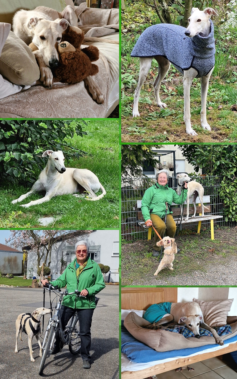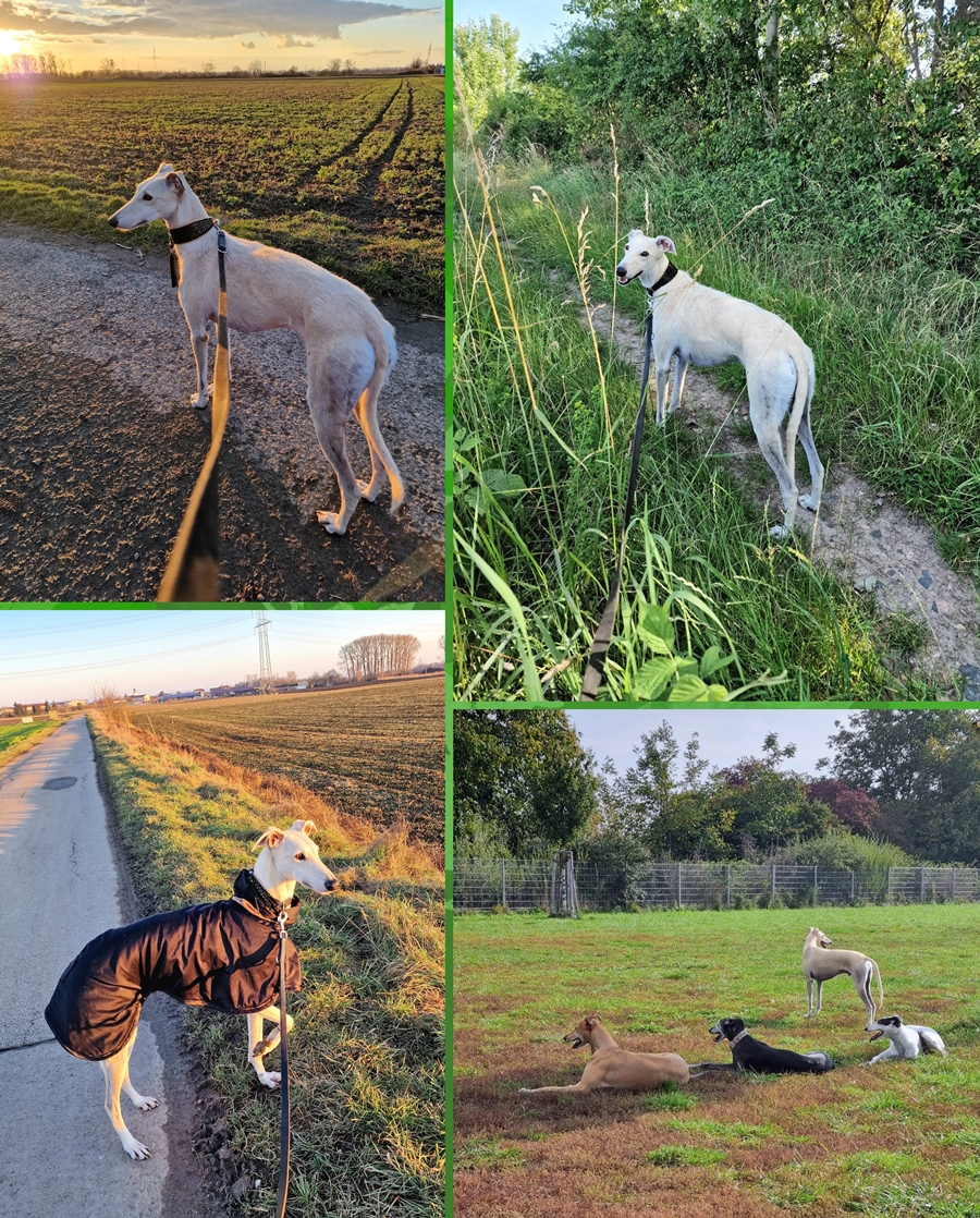 Geboren: 10.06.2022 Rasse: Galgo español Geschlecht: Rüde kastriert Grösse: folgt 24. Oktober 2024 Vorstellung von Colin : Auch Colin ist einer der Galgos - wie jedes Jahr gem. Schätzungen rund 50'000 - der seinem Jäger nicht mehr von Nutzen war. ![]() Colin hatte Glück er wurde nicht ausgesetzt oder sonstwie entsorgt sondern dem Tierschutz übergeben. Nun befindet er sich bei einer spanischen Tierschützerin und wird dort für die Reise in die Schweiz vorbereitet. Sobald wir in der Pension wieder Platz haben oder eine geeignete Pflegestelle finden, wird er reisen können. ![]() Falls Sie Colin kennenlernen möchten und ihm ein passendes Zuhause geben könnten, verlangen Sie bitte unser unverbindliches Bewerbungsformular: Tel. 0041 32 462 3219 (falls Anrufbeantworter, bitte Meldung hinterlassen, wir rufen gerne zurück) oder per Mail: info@grisette.ch. Colin ist geimpft, gechippt, kastriert, auf Mittelmeerkrankheiten getestet und wird bei der Einreise durch uns verzollt. Er wird mit Schutzvertrag gegen eine Schutzgebühr von SFr. 600.-- nach vorheriger Platzvorkontrolle vermittelt. 02. Dezember 2024 Colin heisst jetzt Aayan : Colin, der zusammen mit Carmen, Dino und Brina bei uns im Jura ankam, durfte nach einem kurzen Zwischenstopp im verschneiten Jura...... ...... in sein neues Zuhause umziehen wo er nun Aayan genannt wird. Er lebt bei einem windhunderfahrenen Frauchen mit viel Zeit, Haus und Garten. Wir freuen uns für alle, er ist dabei sich gut einzuleben: 14. Januar 2026 Ein Jahr Aayan : 09.12.25: Hallo, liebe Sandra! Heute vor einem Jahr habe ich Aayan von dir bekommen. Ich bin so dankbar, dass ich ihn habe! Allerdings hat es wider Erwarten recht lange gedauert, bis ich für mich mit ihm so richtig angekommen war. Er ist so anders als die Salukis. Er ist viel unabhängiger und total auf die Jagd programmiert. Und obwohl er verfressen ist, ist er in solchen Situationen nicht mehr ablenkbar. Zum Glück springt und schreit er aber nicht mehr bei jeder Hasensichtung, so wie am Anfang. Und bei uns gibt es sooo viele Hasen und Rehe. ![]() Aayan ist ein toller Hund mit einem wunderbaren Wesen. Er ruht in sich und lässt sich durch nichts erschüttern. Ich kann ihn in die Stadt und in Geschäfte mitnehmen und er fährt Aufzug, als hätte er noch nie etwas anderes gemacht. Er ist mit allen Hunden verträglich, hat seit zwei Monaten aber endlich gelernt, anderen im Freilauf deutlich die Grenzen aufzuzeigen. ![]() Ich hoffe, dass bei euch alles gut läuft und dass du nach wie vor vielen Windhunden ein schönes neues Zuhause vermitteln kannst und andere mit ihren Hunden genauso glücklich werden, wie ich mit Aayan. Ich liebe ihn! Viele herzliche Grüße und alles Liebe, Brigitte und Aayan |