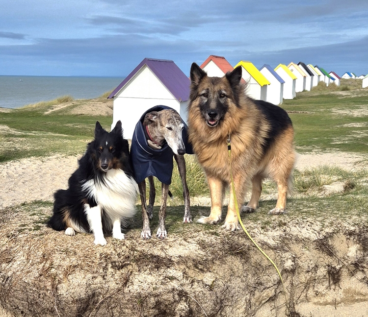 lange bei uns sein dürfen. Hallo Sandra Nach langer Zeit wieder einmal ein Kurzbericht über unsere beiden "Grisette" Schätze. Teo wurde ja am 01.10.2025 bereits 12 Jahre alt. Er erfreut sich nach wie vor bester Gesundheit. Ein vorsorglicher "Alterscheck" beim Tierarzt brachte, gemäss Tierärztin, so hervorragende Werte zu Tage, wie sie sie noch nie bei einem Altdeutschen Schäferhund in diesem Alter gesehen habe. Man merkt es ihm auch an. Für sein Alter ist er immer noch sehr aktiv und spielt mit unserem Navani und auch mit Daria immer noch sehr gerne. Nicht lange, aber dafür umso intensiver so dass einem beim Zusehen einfach das Herz aufgeht. Natürlich hat er seine kleinen "Macken", die darf er aber auch haben denn sie machen ihn um so liebenswerter. Eben ein alter und lieber Schmuse- und Knuddelbär. Daria, unsere "Diva" ist eine aussergewöhnliche Galga. Sie läuft bei den Spaziergängen in freier Natur ohne Leine immer 2 - 3 Meter neben uns. Selbst als neulich ein Reh rund 30m vor uns über den Weg sprang - Ohren hoch - los - kurzer Pfiff - Abbruch der Verfolgung und sofort wieder zurück zu uns. Der Abruf klappt bei ihr immer, auch während ihren langen Sprints - Sitz und Platz macht sie aber nicht - muss sie ja auch nicht denn stehend warten macht sie auch perfekt. Auch sie ist mit ihren bereits 8 Jahren immer noch top fit und flitzt mit unserem Navani mit langen Läufen durch die Gegend und das wunderbare daran ist, dass beide jederzeit abrufbar sind. wie gesagt. Wir sind enorm glücklich, zwei so tolle Hunde von Dir erhalten zu haben. Mit unserem jungen Sheltie verstehen sie sich ausgezeichnet und lassen auch viele seiner momentan pubertierenden Anfälle ruhig und gelassen über sich ergehen. Wir wünschen Dir und Deinen Wufis alles Gute im neuen Jahr, Gesundheit und viel Erfolg bei der Vermittlung deiner Hunde. Liebe Grüsse Manuela und Andreas mit ihren Wufis |