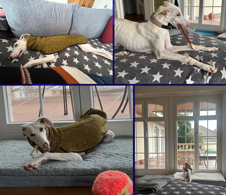 Ankunft von Akeena, Mikasi, Nyiol und Otto Vol 2 (movie) Ankunft von Akeena, Mikasi, Nyiol und Otto Vol 3 (movie) Ankunft von Akeena, Mikasi, Nyiol und Otto Vol 4 (movie) ![]() ![]() 21. Oktober 2025 Neue Fotos von Mikasi : Während Otto und Akeena bereits ihre Menschen gefunden haben, warten Mikasi und Nyiol noch immer bei uns im Jura auf die passenden Zweibeiner. Zwei sehr offene, junge Galgos, die bereit sind, die Welt zu entdecken : 31. Dezember 2025 Fotoshooting und Trainingstag : Auch Mikasi durfte letzten Samstag beim Fotoshooting dabei sein. Wie immer wenn man mit ihm zusammen ist: alle hatten ihren Spass : ![]() ![]() ![]() ![]() Und am Sonntag lernte Elke,