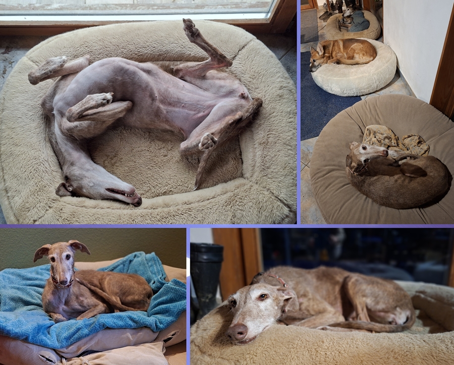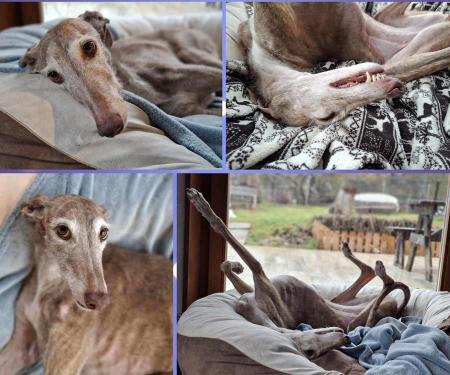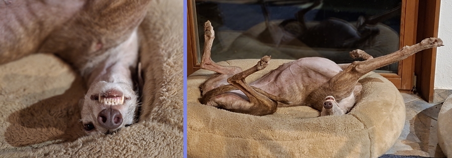 So cute. She is the funniest dog ever and she starts her next level of training next week. She and Leo work together as well as us and the trainer. She just blossoms as she learns. Take care of yourself. 01. November 2022 Remy is deeply loved : 17.07.21: Just letting you know that we changed her name! She just didn't like Rita! Within days she responded to Remy!! She is doing great and if something comes up we would be happy to give a forever home to another of your rescues. Because Remy is so gentle any new addition would have to be smaller - size of a whippet and 2 years or under. Final approval would as I am sure you would agree be Remys! The day this photo was taken we were visiting! ![]() She is great with other dogs and my Friends want their pups to learn from her and Leo. She has made a world of difference in Leo's life as well as mine! Best regards and thank you for everything you have already done. Joanne 31.10.22: She is doing beautifully. She plays most of the day with a little whippet called Kai and at night our little group cuddles together. She is deeply loved ![]() 05. Februar 2026 Remy sucht erneut ein Zuhause : Remys Frauchen wurde im November notfallmässig ins Spital eingeliefert und Remy und zwei weitere Hunde (2 Whippets vom Züchter) wurden von der Polizei in ein aargauisches Tierheim gebracht. Als sich herausstellte, dass Remys Frauchen nicht mehr nach Hause kommen würde sondern ins Pflegeheim gehen muss, wurden die 3 Hunde per Ende Januar zur Vermittlung freigegeben. Das Tierheim informierte uns über den Fall und heute fuhr ich in den Aargau und habe Remy geholt. Sie darf bei uns in der Familiengruppe bei Nikan und Paulinchen sein, bis ein neues Zuhause gefunden wird. Die Vergesellschaftung verlief absolut unproblematisch, momentan schlafen die drei Mädels hier bei mir im Wohnzimmer: Remy ist eine sehr freundliche und gut verträgliche Hündin und mit ihren nur 60 cm klein und zierlich. Momentan ist sie noch ein bisschen zu mager (18.5 Kg) und muss noch ein bisschen "gepäppelt" werden. Und leider hat sie ein "Handicap": sie hat Epilepsie. Ist aber mit Medikamenten gut eingestellt und hatte in der Zeit im Tierheim ausser ganz am Anfang, als man noch nicht wusste, dass sie Medis braucht (da hatte sie einen leichten Krampanfall), keine Anfälle. Wir hoffen natürlich sehr, dass sie trotzdem bald ein Zuhause finden wird. Es sollte ein eher ruhiges Zuhause sein, gerne auch zu anderen netten Hunden. Sie könnte aber auch als Einzelhund vermittelt werden, da sie sehr menschenbezogen ist. 18. Februar 2026 Remy hat sich gut eingelebt : Remy hat sich sehr gut in unserem Familienalltag eingelebt. Sie ist eine unproblematische, liebenswerte Hündin. Momentan ist aufgrund des Wetters eher faulenzen auf dem Programm, sh Fotos. Remy ist verschmust, sucht immer wieder den Kontakt mit dem Mensch, kommt auch mit unseren beiden alten Ladies gut klar. In der Zwischenzeit haben wir das Dossier vom Tierarzt der Vorbesitzerin erhalten. Der erste Anfall war im März 2025, 8 Stunden später der Zweite. Interessant die Bemerkung im Dossier, dass Remy vorher einen Kauknochen hatte, Zitat "unklar ob chinesisch". Davor wurde Remy - nennen wir es mal "sehr regelmässig" - geimpft und im Juli 2024 war eine Zahnsanierung. Im April 2025 dann ein dritter und im Mai 2025 der vierte Anfall. Danach, ebenfalls Im Mai 2025, wurde ein MRI gemacht, kein Hinweis der eine Epilepsie erklären würde. Nach dem MRI wurde mit der Medikation bekonnen (2 x 50mg Aphenylbarbit / Tag). Seither keine Anfälle mehr (ausser den im vorherigen Tierheim, als man nicht wusste dass Medis benötigt werden). Nun hoffen wir natürlich sehr, dass Remy so gut eingestellt ist, dass in Zukunft keine Anfälle mehr kommen. Wissen tut man das aber bei dieser Krankheit leider nie zu 100%. |