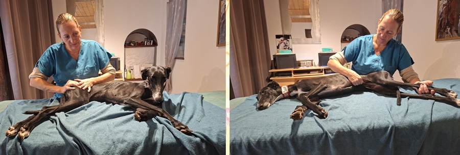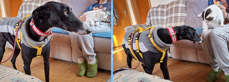 Geboren: 29.03.2022 Rasse: Galgo español Geschlecht: Hündin kastriert Grösse: folgt 06. August 2025 Vorstellung von Samba : Ein spanischer Jäger hat die Tierschützer informiert, dass er Samba loshaben will. Nun befindet sich Samba in einer spanischen Auffangstation wo sie für die Reise in die Schweiz vorbereitet wird und wenn alles klappt reist sie im September zu uns in die Pension bis ein Zuhause gefunden wird. Anfänglich ein bisschen scheu, taut sie schnell auf und sei eine speziell liebenswerte Hündin und mit den anderen Galgos ist sie gut verträglich. Falls Sie Samba kennenlernen möchten und ihr ein passendes Zuhause geben könnten, verlangen Sie bitte unser unverbindliches Bewerbungsformular: Tel. 0041 32 462 3219 (falls Anrufbeantworter, bitte Meldung hinterlassen, wir rufen gerne zurück) oder per Mail: info@grisette.ch. Samba ist geimpft, gechippt, kastriert, auf Mittelmeerkrankheiten getestet und wird bei der Einreise durch uns verzollt. Sie wird mit Schutzvertrag gegen eine Schutzgebühr von SFr. 600.-- nach vorheriger Platzvorkontrolle vermittelt. 02. Oktober 2025 Samba ist angekommen : Letzten Samstag ist die sehr sympathische, feingliedrige, hübsche Samba im Jura angekommen. Da Samba nicht "rund" läuft und auf den Röntgenbilder, die in Spanien gemacht wurden, kein Grund dafür ersichtlich ist, ging ich gestern mir ihr in die Osteopathie / Physio. Sie war ausgesprochen lieb, auch wenn ihr das Ganze nicht so geheuer war. Hier der kurze Bericht dazu, in zwei Wochen ist der nächste Termin : Samba marchait mal derrière (très bas et large) lors de sa visite. Les chaînes musculaires dorsales étaient très tendues. Gros verrouillage sur le bassin et les dernières lombaires à droite. Les articulations des hanches me semblent bien. Nous allons revoir Samba dans 2 semaines. ![]() Und heute gings zum Katzentest: |