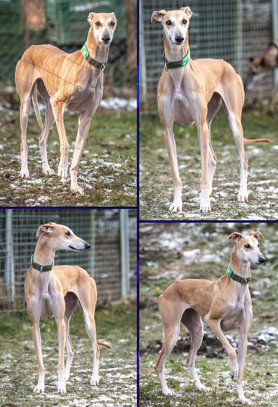 Geboren: 20.10.2021 Rasse: Galgo español Geschlecht: Hündin kastriert Grösse: 64 cm 24. Oktober 2025 Vorstellung von Sofia : Sofia, eine weiterer Galgo der aus Sicht der Jägers nicht mehr gut genug zur Jagd ist. Und somit in seinen Augen nichts mehr wert. Nun befindet sich Sofia in einem unserer spanischen Partnertierheime, wo sie für die im Dezember geplante Reise in die Schweiz vorbereitet wird. Anfänglich soll Sofia schüchtern gewesen sein, hat sich in der Zwischenzeit aber gut eingelebt und wird immer offener. Falls Sie Sofia kennenlernen möchten und ihr ein passendes Zuhause geben könnten, verlangen Sie bitte unser unverbindliches Bewerbungsformular: Tel. 0041 32 462 3219 (falls Anrufbeantworter, bitte Meldung hinterlassen, wir rufen gerne zurück) oder per Mail: info@grisette.ch. Sofia hat einen spanischen EU-Pass, ist geimpft, gechippt, kastriert und auf Mittelmeerkrankheiten getestet. Sie wird mit Schutzvertrag gegen eine Schutzgebühr von SFr. 600.-- nach vorheriger Platzvorkontrolle vermittelt. 23. Dezember 2025 Sofia ist angekommen : Letzten Samstag sind Sofia, Goldie, Leo und Sony gut bei uns angekommen. Sofia ist eine sehr hübsche Hündin und offener als erwartet. Heute waren wir zusammen mit Sony auf einem ersten Spaziergang. Sie lief sehr gut mit, hat sich auch versäubert und durchfahrende Autos / Traktoren beunruhigten sie nicht allzu sehr. Erster Spaziergang mit Sofia und Sony (movie)